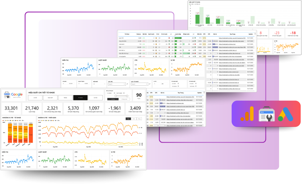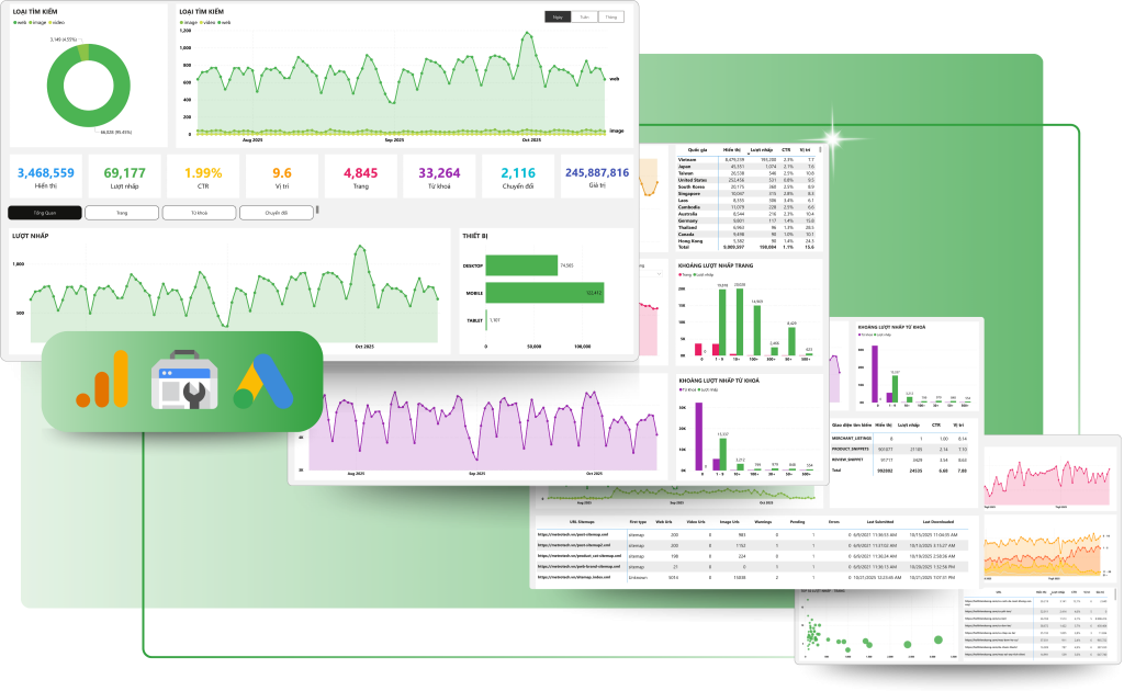 Giúp bạn phân tích sâu hành vi tìm kiếm, đánh giá độ cạnh tranh và theo dõi hiệu quả từng truy vấn thực tế.